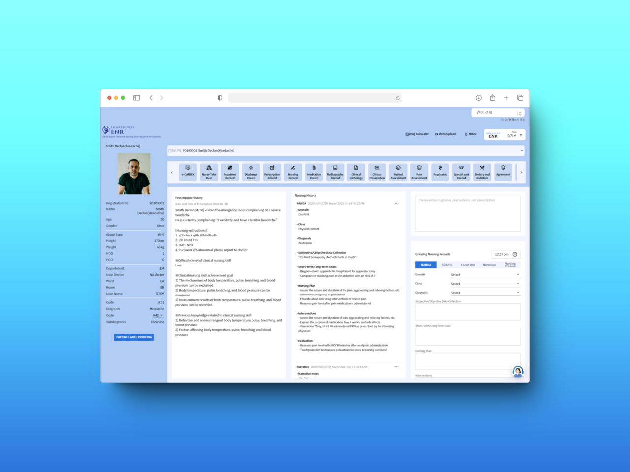 Smart ENRは、さまざまな看護記録や患者評価・評価ツールを含んでいます